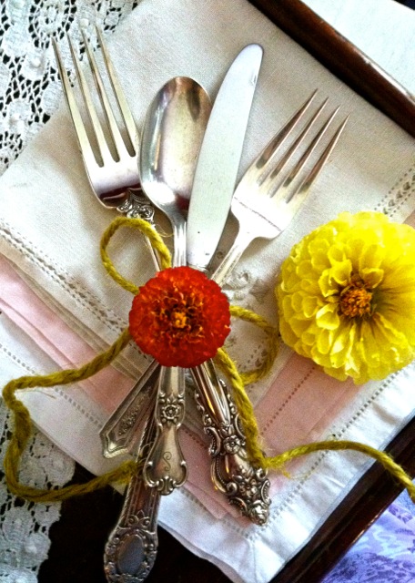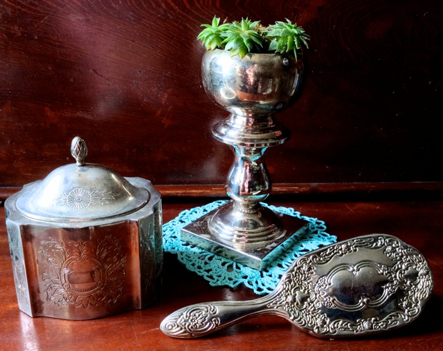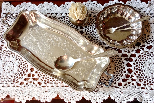 No doubt, I love vintage china, glassware and linens – the patterns, colors, and beauty all inspire me. But there’s another category of tableware from the vintage table to rediscover and admire – silver-plated dishes, flatware and accessories. Whether elegant, casual or shabby chic, the gleam of silver adds sophistication and richness to the table.