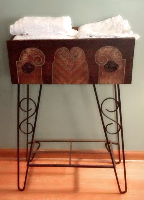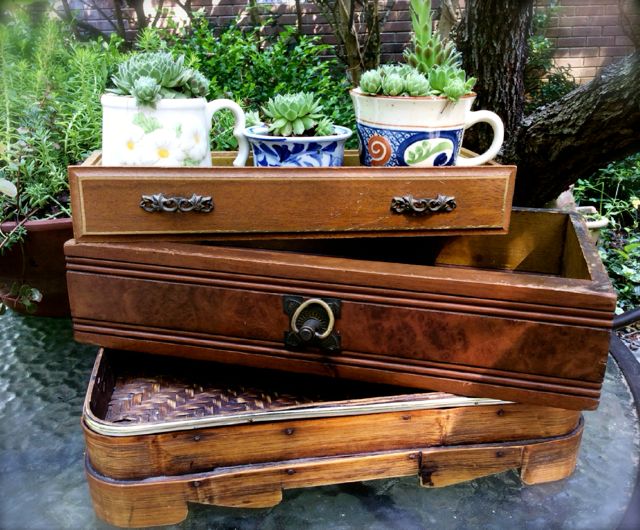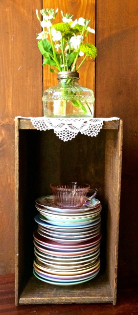 I especially appreciate old boxes, crates and drawers with their rich, dark color and interesting grain patterns. In my opinion, their scratches, dings and cracks make them more perfect and beautiful. And, since they can hold things, such as napkins or gifts, they are utilitarian as well!