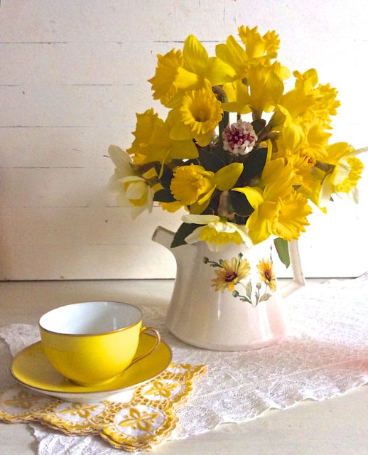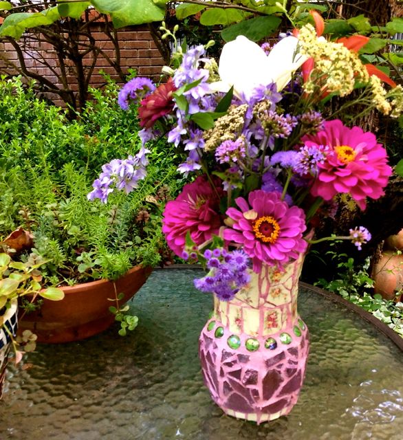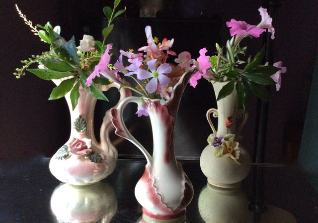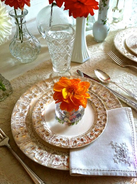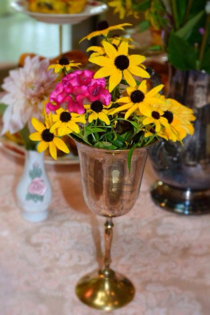 The purpose of a vase is simple – to hold pretty flowers. The vase, however, is also the frame for the bouquet, creating a look that might be beautiful, elegant, colorful, fun or whimsical. Today’s post, short on words but long on photos, features the eclectic mix of vintage vases and containers at Southern Vintage Table and how they display their lovely flowers in many different ways.