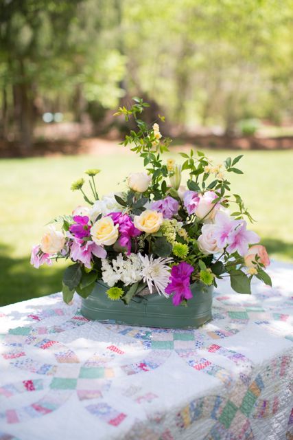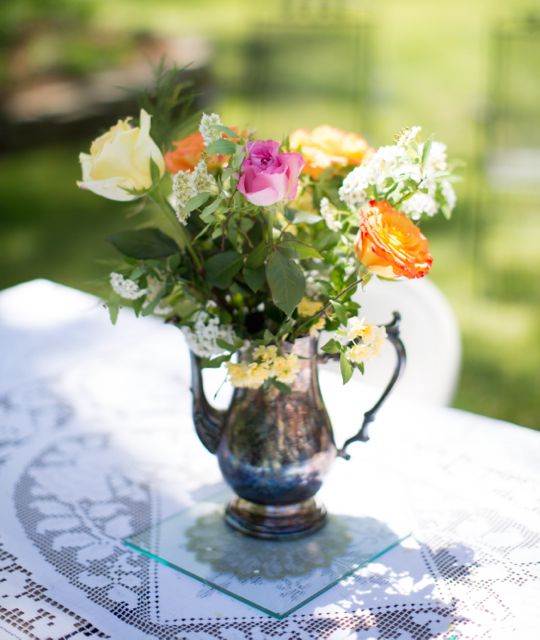 Beautiful flowers always are appreciated at any affair and even more so when framed in a vintage vase or container. Southern Vintage Table has many choices – milk glass, blue mason jars, petite ceramic, silver pitchers, green glass vases, teapots, sugar dishes and creamers, small bottles and even a Coleman jug or two. To see more of our collection, take a look at our new Pinterest board, Vintage Vases. More pins are on the way!