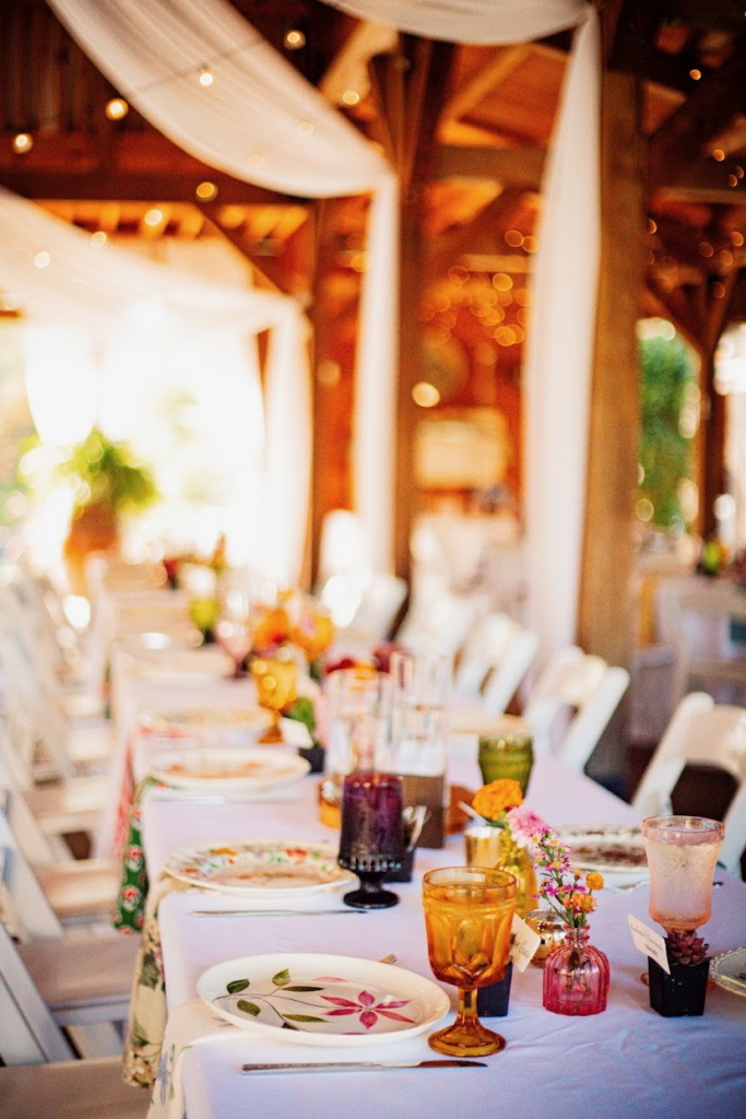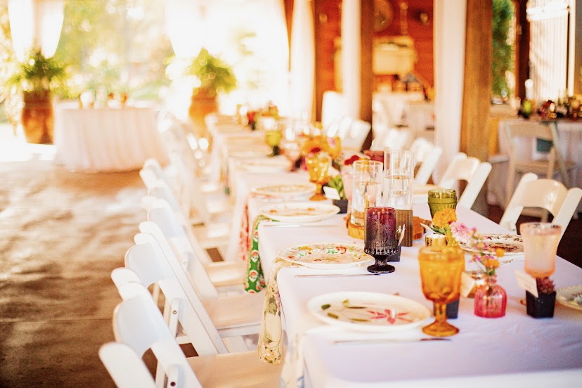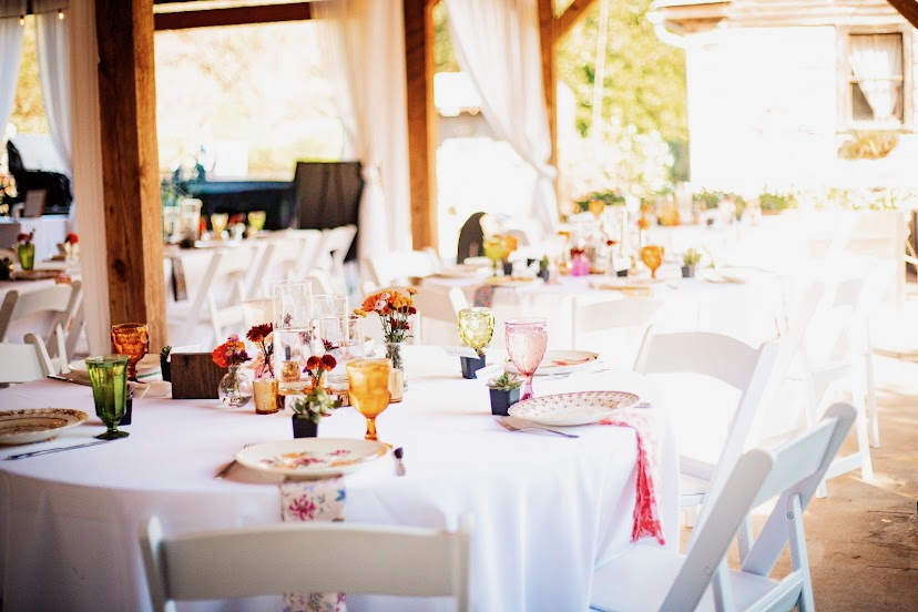 Savannah and Andrew’s fall wedding at The Chapel Hill Carriage House was the perfect blend of charm, creativity, and heart. Their reception tables were a delightful mix of vintage china, colorful goblets, classic flatware, and soft napkins — each place setting thoughtfully mismatched in the most beautiful way.