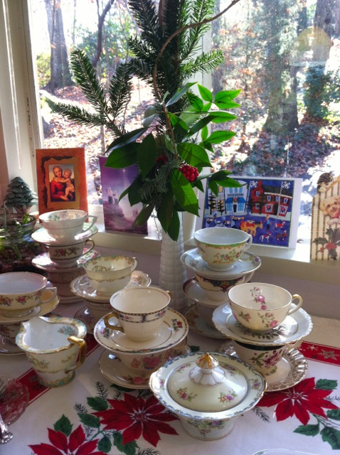 After dinner, we donned our hats, made our birthday wishes to Cis and Mary and had scrumptious key lime cheesecake and coffee. Pass the vintage china, please…