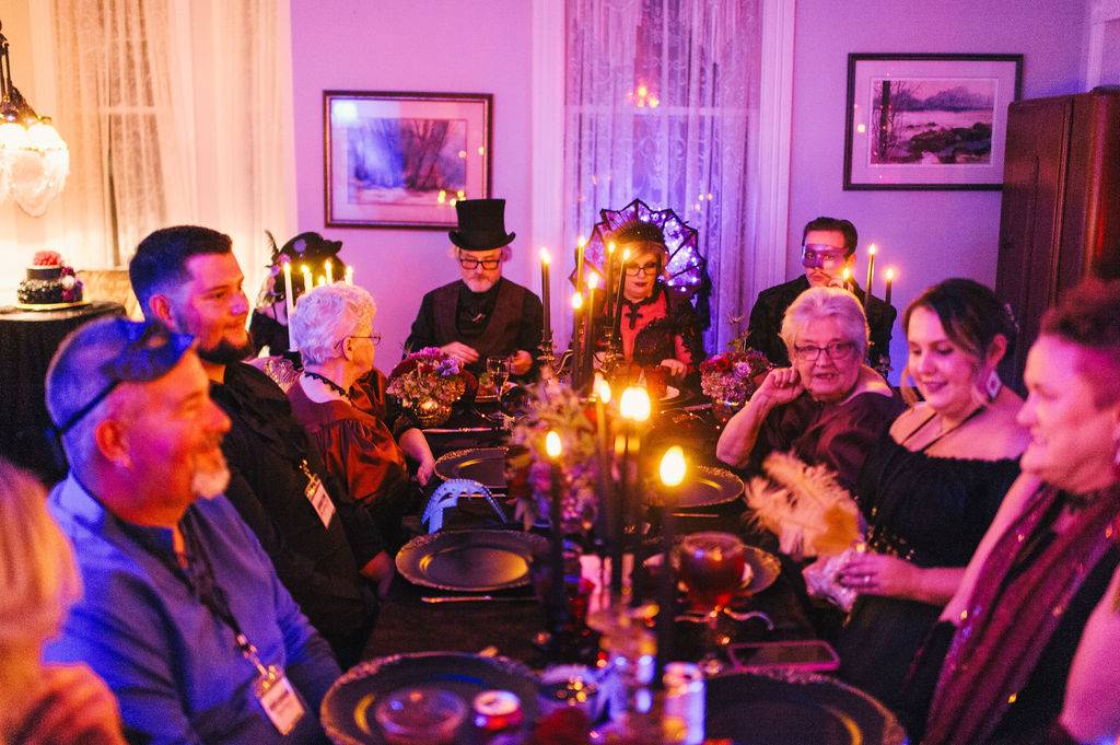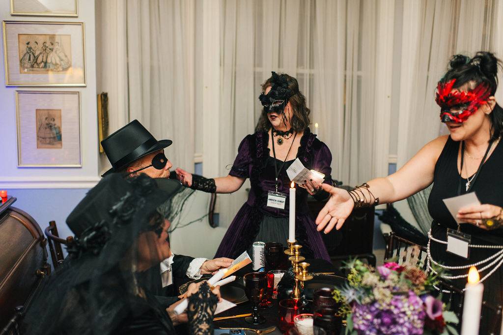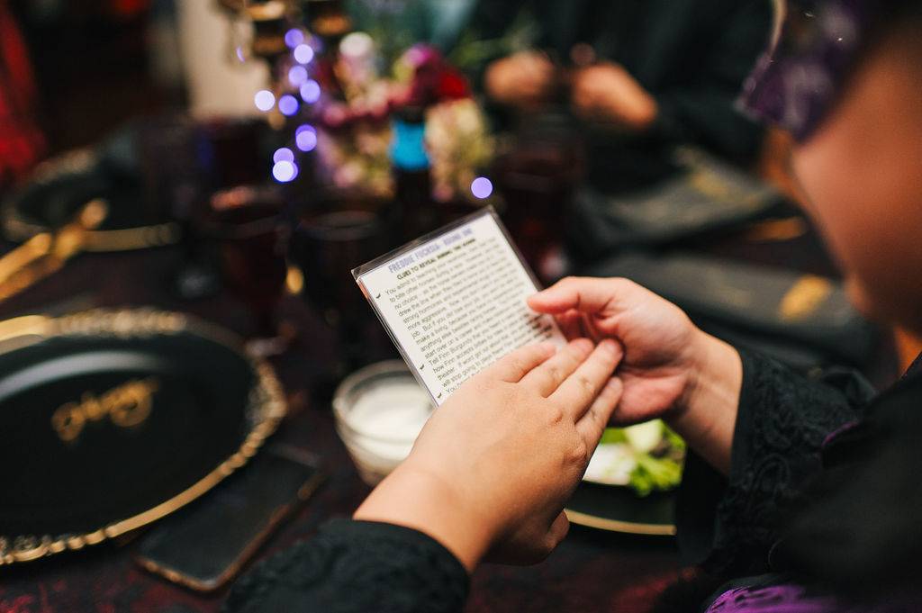 What else do you do at a halloween wedding party? Of course, solve a murder mystery! Looking at the expressions of the guests, you can tell this was a huge hit! Here’s what Cathy shared with us.