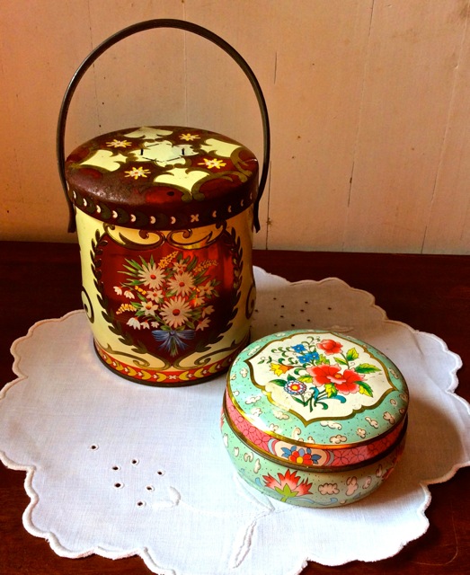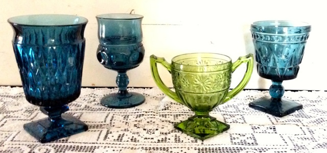 So what treasures have been added to our vintage inventory? First, we have more beautiful goblets – milk glass, crystal, pink and blue – and a few dainty teacups. We also now have a nice collection of vintage tins to add to a tablescape – love these!