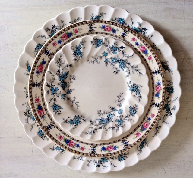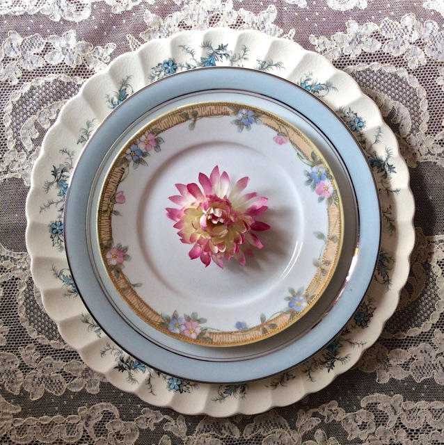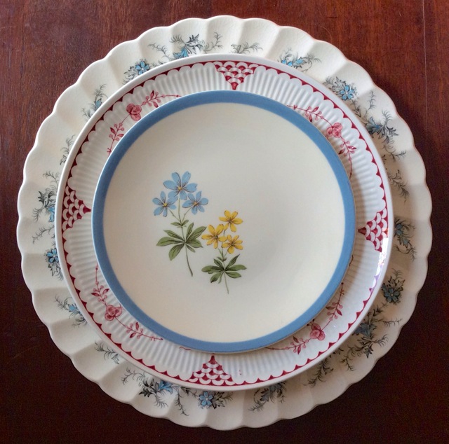 Let’s start with the dinner plate. Here are several different looks this charming pattern can create with other lovely vintage patterns!